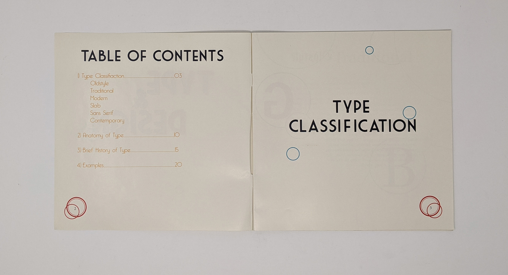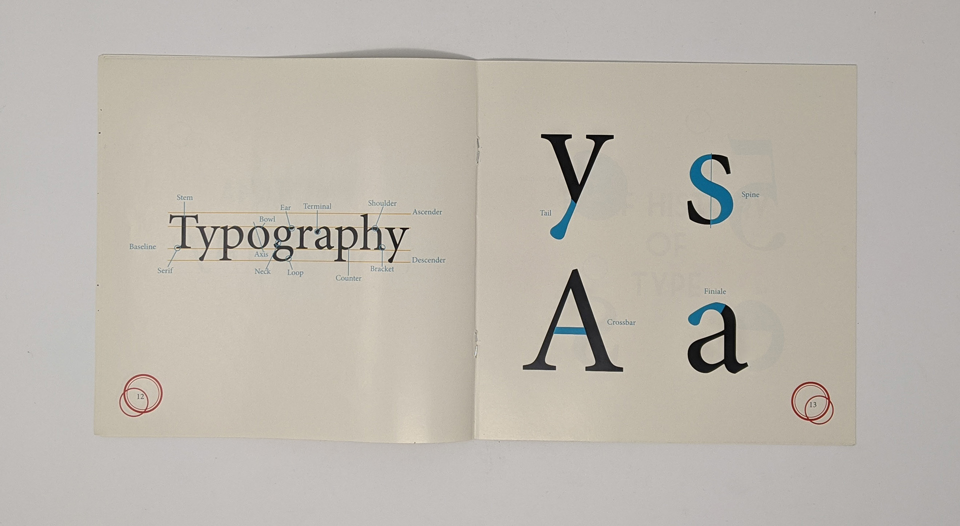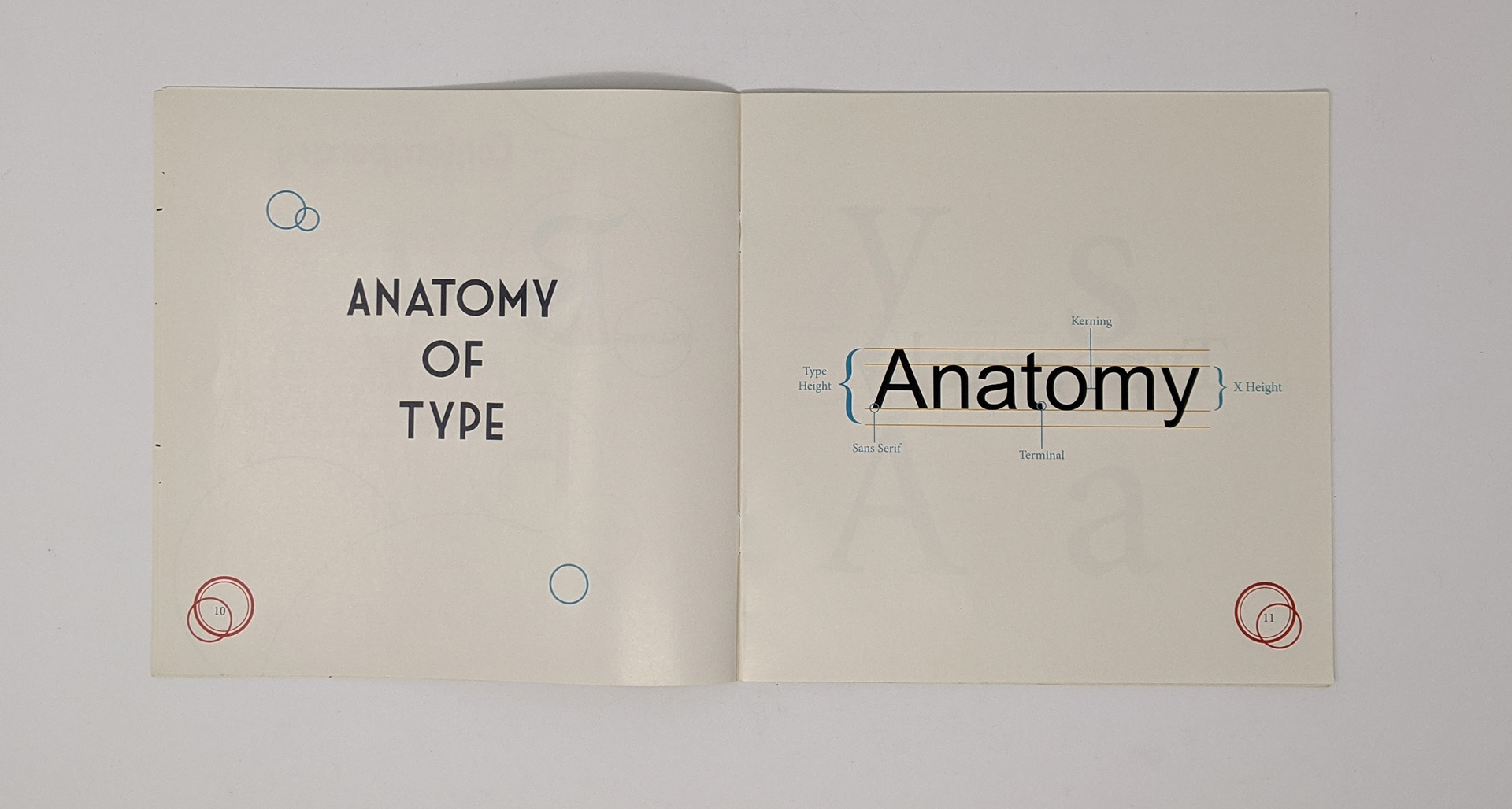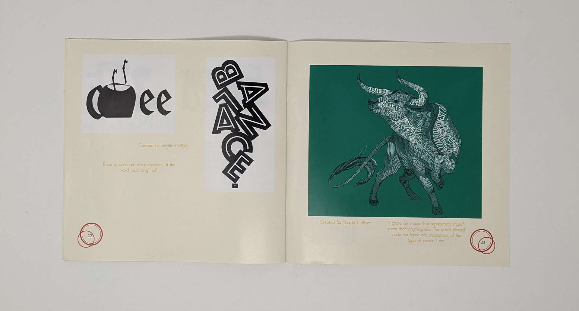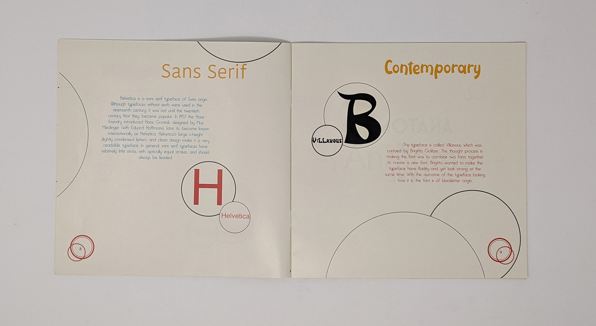 In my Type and Design class we were given an assignment for which we needed to create a book in which we fill the pages with the history of type as well as type classification, the anatomy of type and some typographical art we created in class.